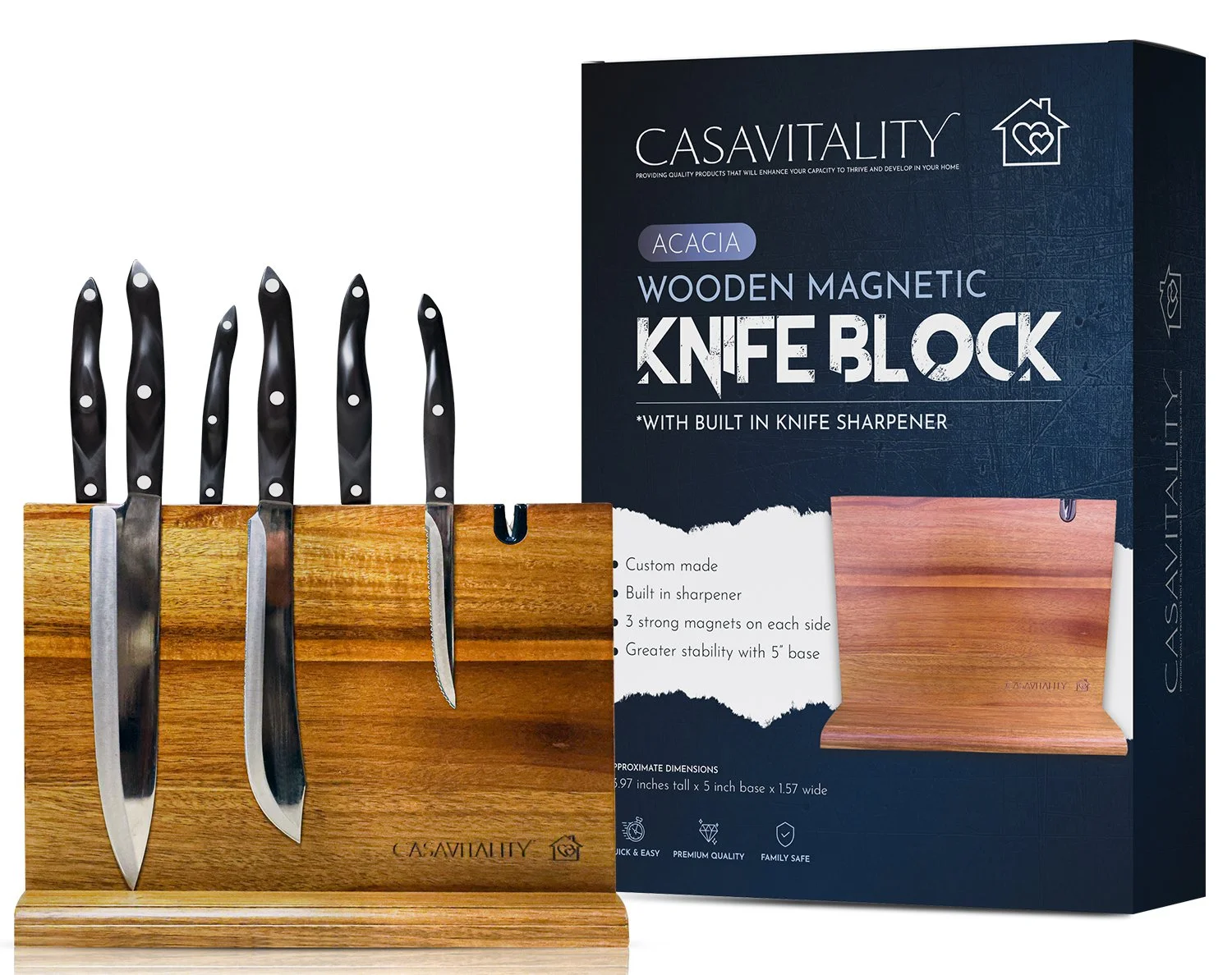 transform your kitchen with our double-sided magnetic acacia wood knife block, a sleek fusion of elegance and functionality.